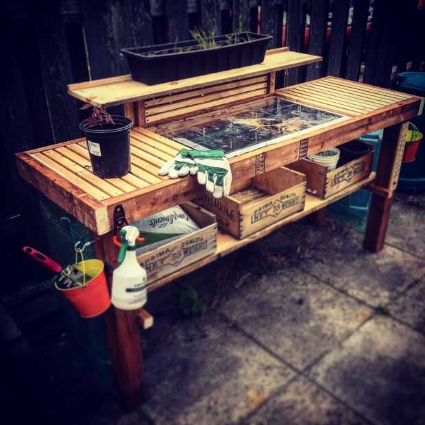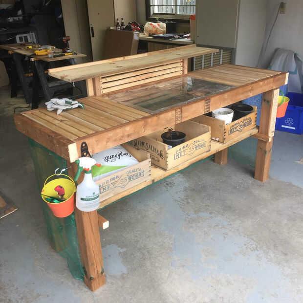 Cuando mi banco se hizo básicamente decidí que quería añadir otro estante de grwoing a la derecha de la plantación que Banco chould cultivar tomates y pimientos. Valerse algo aleatoria de madera tuve poniendo alrededor y dejó en un estante muy simple que fue robusto y se ve muy bien también.