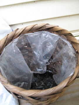 Esta fue la parte que más tiempo tuvo en gran medida, sobre todo porque no tenía una bañera grande en el cual mezclar el agua y la seque para macetas suelo para hacer el suelo húmedo las instrucciones convocatoria. Terminé usando este dinky tarrito con construido en plástico a mano mezclar el agua y el suelo. Te recomiendo conseguir un cubo grande o tina para hacer esto en un lote grande.