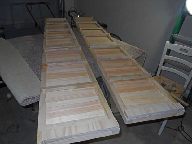 Los soportes se celebrará en el lugar con los tornillos, pero esta me pareció la manera más fácil de conseguir que permanece en posición cuando perforan los orificios. Asegúrese de que usted coloque los bordes redondeados en el lado sin la izquierda de los agujeros de las bisagras y no por goteo cualquier pegamento. Usted puede intentar limpiar que cosas fuera de la madera, pero nueve veces fuera de diez usted terminará con un pequeño parche donde no permanece en la mancha. Usar pequeñas cantidades y no mancharlo.