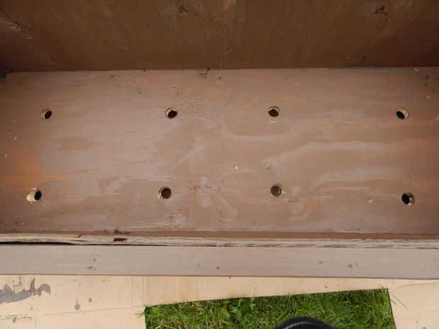 2) preparación del cajón por lijado hacia abajo de cualquier área áspera y perforar los agujeros de drenaje en la parte inferior. Yo sabía que esta caja no duraría para siempre como una jardinera para no pasar demasiado tiempo de lijado a la perfección. También perforé 1 1/2" agujeros en la parte inferior para el drenaje del agua.