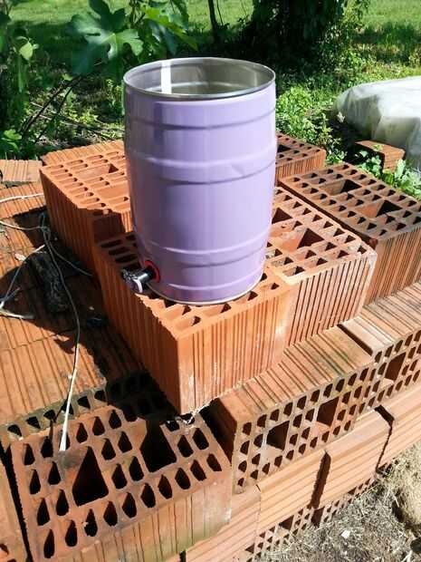 exterior maceteros de barriles de lluvia y paletas -Quería una duradera, profunda y urbanita chic forma crecer lúpulo en mi pequeño patio hormigón en Filadelfia. Encontré esa lluvia pueden tener barriles para barato o gratis. Con el barril de lluvia