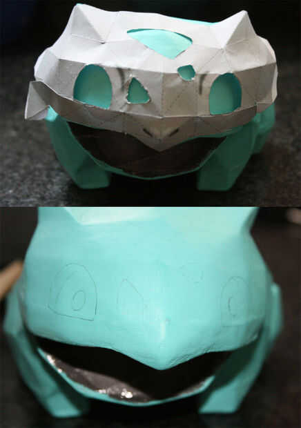 Comencé a pintar el color base. Al principio traté de evitar pintar las manchas y los ojos, por lo que podría tener una referencia para cuando había pintado, pero no era cómodo pintar así. Decidí pintarlo con el color base y luego impreso y montado la cara otra vez para hacer una plantilla fuera de él.