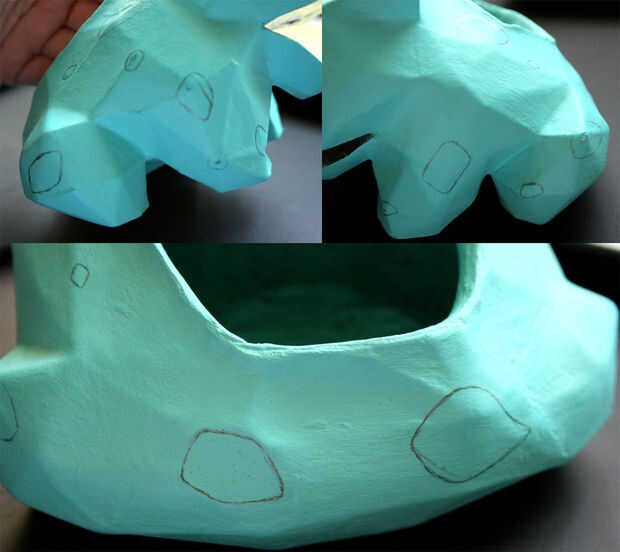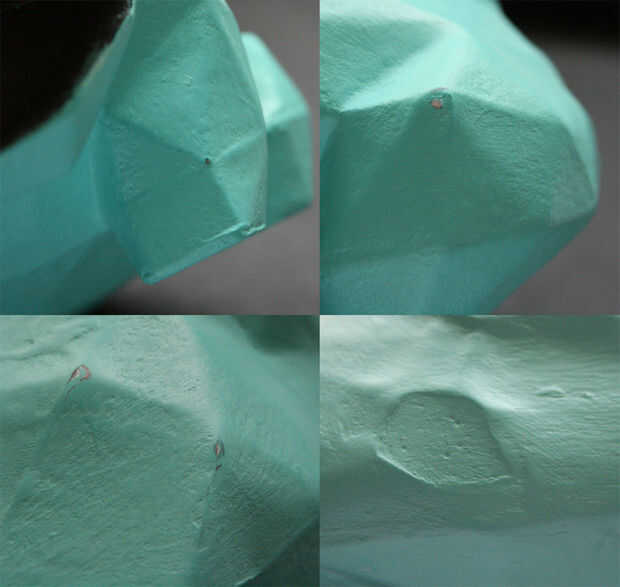 Cuando lija en el color de base que tienen una superficie más suave y al mismo tiempo trabajando en el Bulbasaur, que tengo algunos fallos (como se puede ver en la tercera imagen). He usado los puntos para cubrir estos defectos (nota que saqué los puntos alrededor de las fallas). Nuevos anuncios no se colocan exactamente en el mismo lugar que los originales, pero traté de hacer una distribución homogénea.