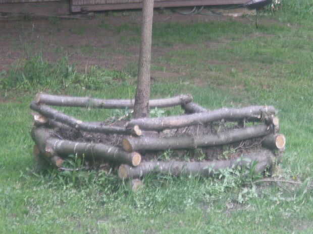 Necesitaba algo alrededor del árbol en mi patio trasero y tenía un montón de ramas caídas hacia abajo en el tormentas de la nieve este año usé las ramas para hacer una caja y la guía alrededor del árbol.