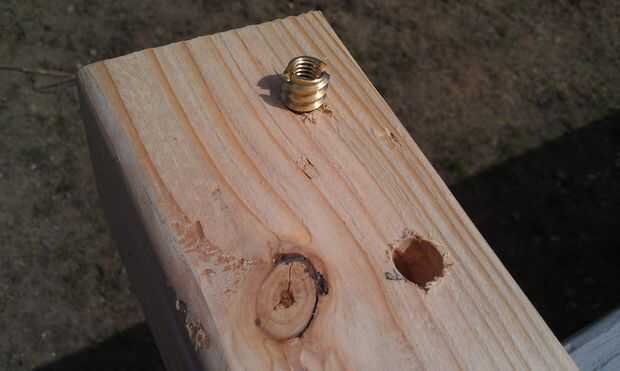 Utilizando un destornillador grande de cabeza plana, tornillo manualmente las tuercas del parte movible en los agujeros. Asegúrese de que ir en recta y atornillarlos en la madera hasta que queden al ras con la superficie.