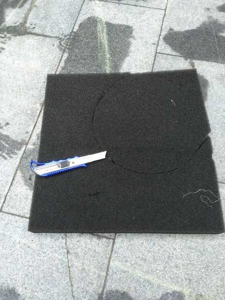 Simplemente coloque el cubo encima de la esponja y cortar con un cúter la forma de círculo de montaje el cubo.