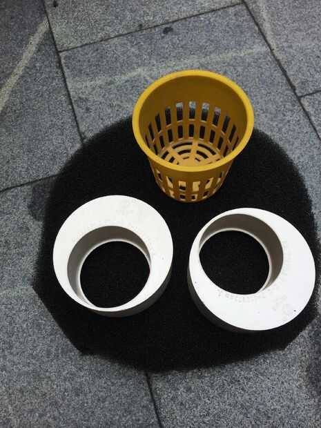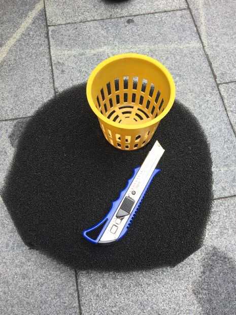 Uno mismo todo sistema de riego necesita algo el suelo al conectarse el depósito de agua. Aquí, estamos utilizando pote neto para este propósito. La esponja es cortada con un agujero del tamaño de la olla red. También utilizamos dos casquillos de la pipa grande como estructura adicional para apoyar la estructura de la presa una vez que el suelo está en la cima de las esponjas.