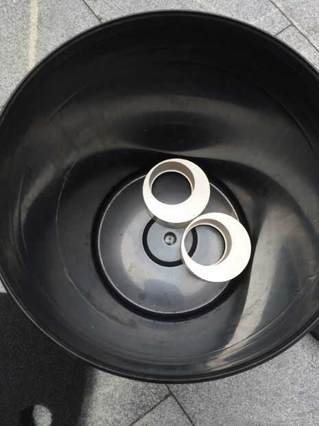 Coloque las tapas de los dos tubos en el fondo de los cubos.