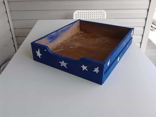 Usé pintura de tiza para decorar la caja jardinera; Fui con un tema estrella spangled. En primer lugar, pinté la caja azul. Entonces yo cortar mis propios diseños estrellas en papel trasero pegajoso. Corte las estrellas y había pegado a la caja donde luego pinté blanco comienza alrededor de la caja. Permitir que el cuadro se seque antes de comenzar con el siguiente paso.