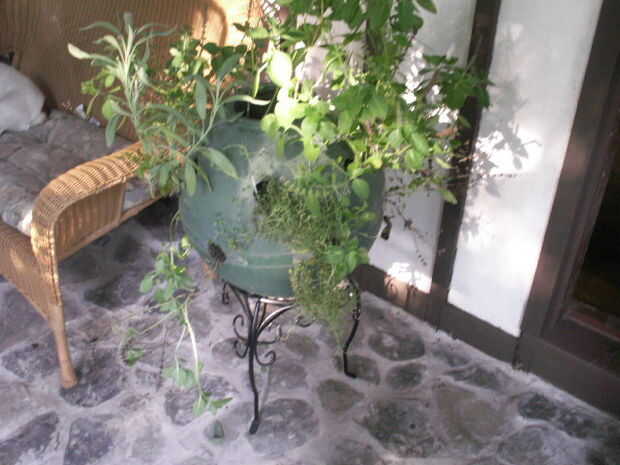 después de ver Wuvie's instructable:, yo sabía que tenía que hacer esto. Así que, teniendo todas las herramientas y materiales en mano, procedió a hacer una jardinera funcional utilizando un recipiente de plástico y una bola de boliche como moldes.