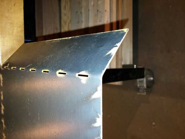 Sujetan la chapa entre la mesa de trabajo y una pieza rígida de metal, luego tomé otra pieza gruesa y rígida de metal y utiliza para doblar uniformemente la brida. Pongo mi peso en ella como flexión y salió bastante decentemente.