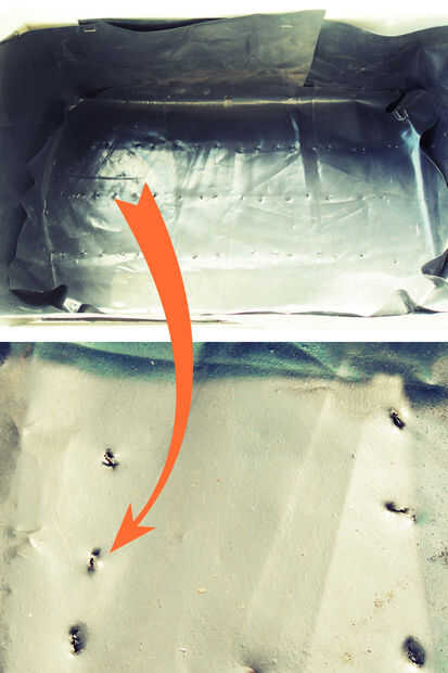 Así que adelante y con la punta de sus tijeras, ni una pluma ni nada que encontrará ahí, meter unos agujeros en la parte inferior de la caja. El sonido de burbujas-como el plástico satisface al alma.