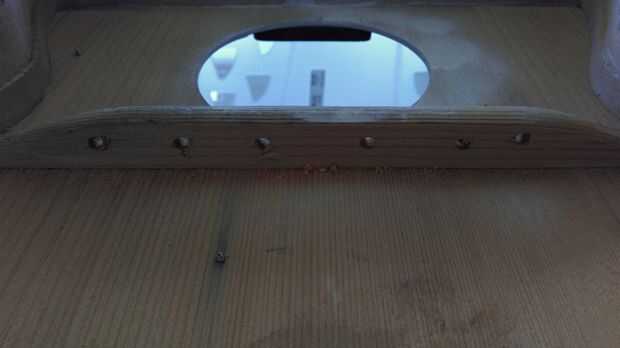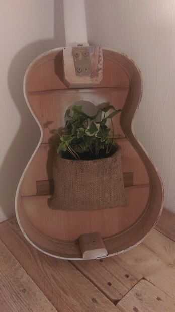 Usando el arreglo cadena sólida bolsa de la malla a la guitarra por pasando la cadena por los agujeros en la madera.