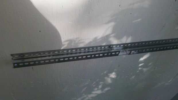 Después de asegurar el soporte a la pared, mida la distancia entre los tableros laterales y centro del corredor. Utilice una sierra para cortar la segunda pieza de ángulo ranurado por lo que es una pulgada o dos más pequeños que estas aberturas. Conecte uno de los soportes de corte al que en la pared por lo que crea una forma de U. Fije los 2 soportes junto con 2 tuercas, arandelas y pernos. Instale el soporte de segunda del mismo modo dejando bastante espacio entre los 2 soportes para permitir que la Junta de centro corredor encajar en el medio.