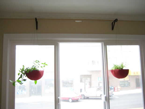 En lugar de fijar dos jardineras a dos soportes, puede cuelgue los cables de cada soporte y fijar con unas abrazaderas de plástico.