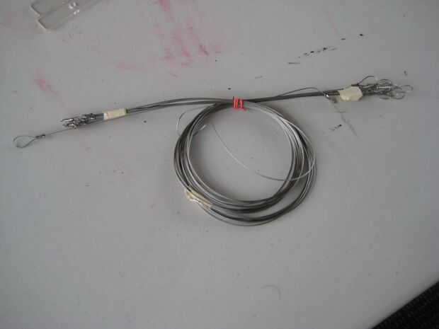 Cinco delgados cables de acero con los tornillos en los extremos
