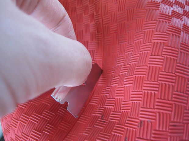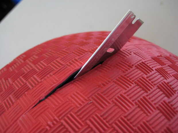 Cortar la pelota en la mitad a lo largo de su costura usando una hoja de afeitar o tijeras.