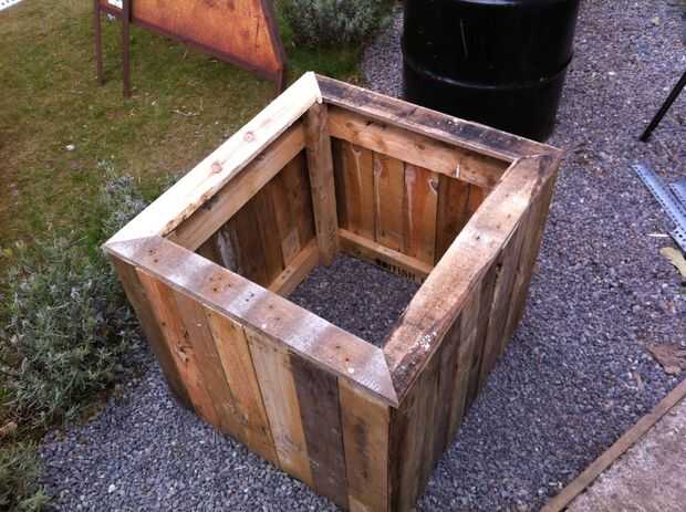 Había reutilizado algunos palets viejos y esto es lo que ocurrió!Paso 1: Hacer la panterSe necesita: una plataforma con bastantes tablas para cubrir la espalda y empalman con la mitad del frente.Barrera de maleza de telaPistola de grapasMartilloClavo