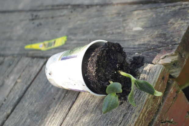 Después de la última oportunidad de las heladas, la planta la plántula en su hogar permanente apretando suavemente los lados de la taza para aflojar el suelo. Retire suavemente la plántula y su bola de la raíz y planta en el suelo.  Dependiendo de lo que se hace la Copa ustedes puede ser capaces de guardar y volver a utilizar el próximo año.