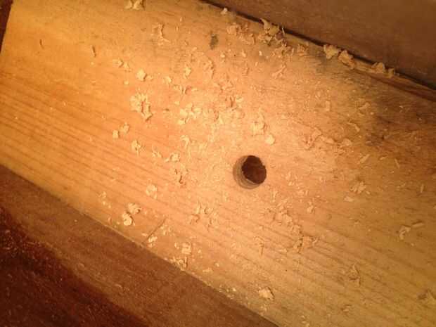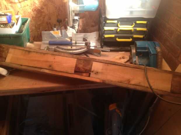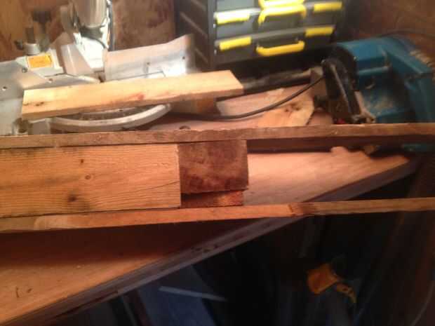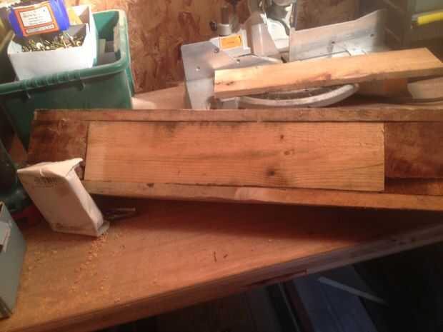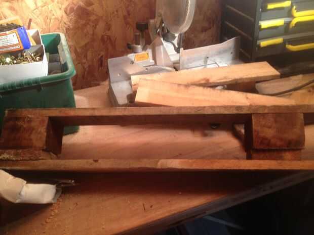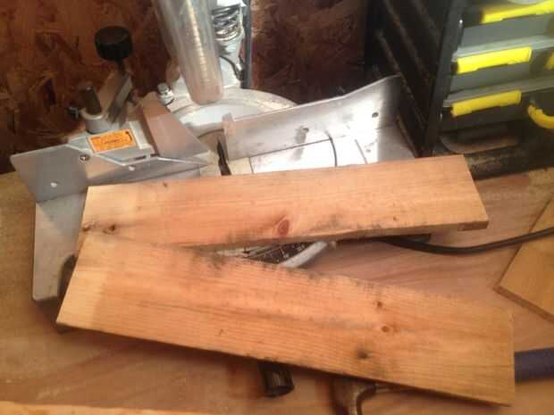 cortar dos piezas de madera del tamaño de los agujeros. No son perfectamente rectas pero realmente no importa.