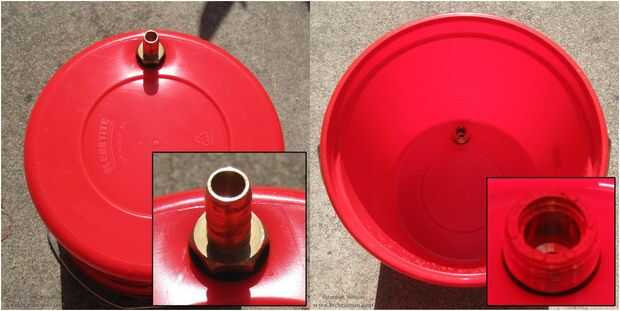 atornillar el latón cara buje sobre las roscas para completar la conexión. Tapón del orificio de latón con el pulgar y llenar el cubo con agua para detectar fugas en el sello. Si la conexión tiene fugas, puede que desee ajustar cómo usted quedar atornillado herméticamente la brida de púas de latón en el cubo.