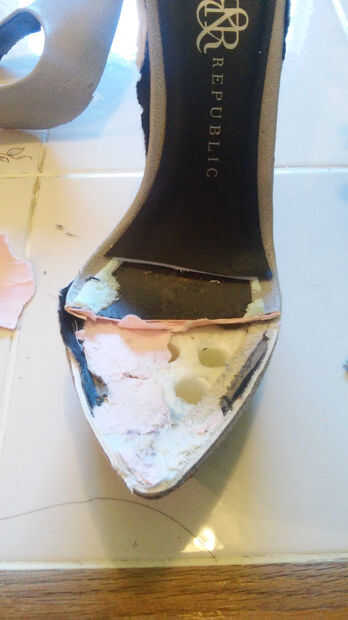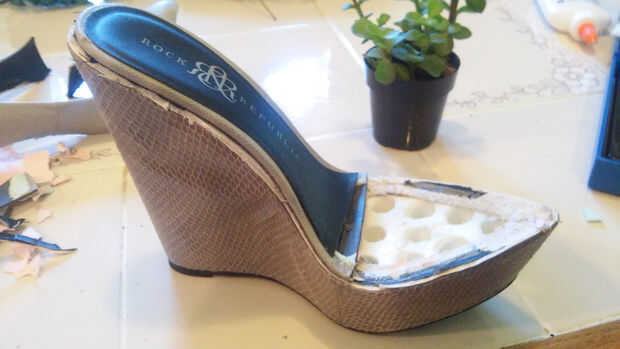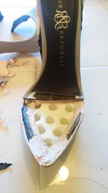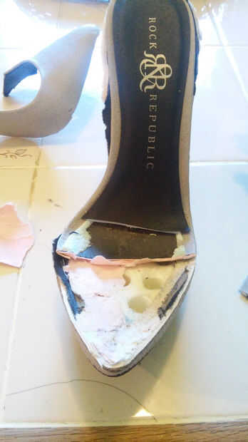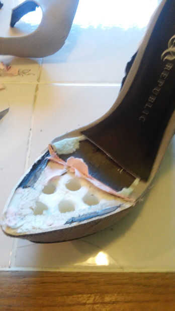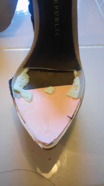 Una vez que el lado de la zapata se ha ido empecé a cortar el dedo del pie del zapato.