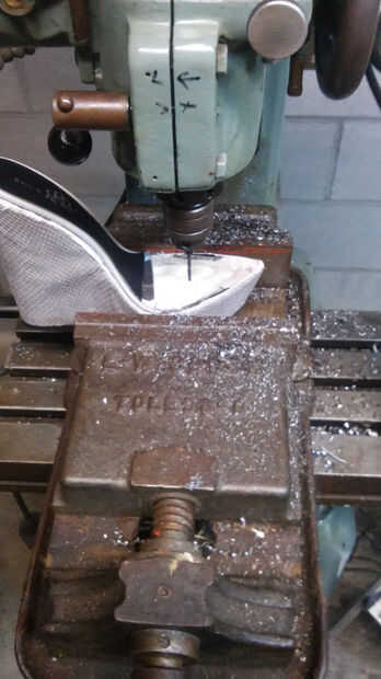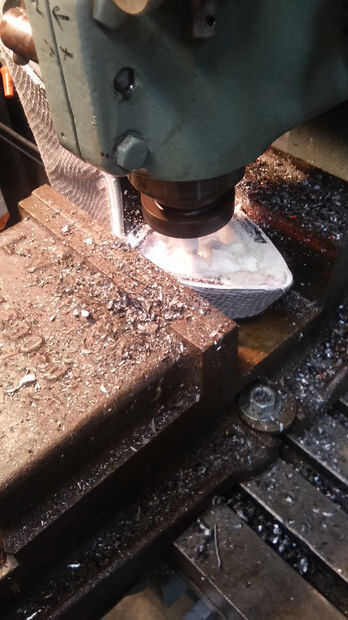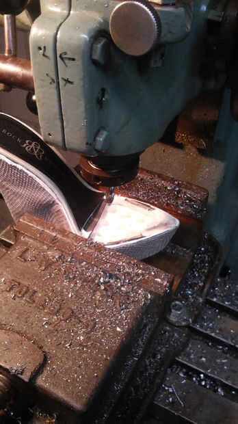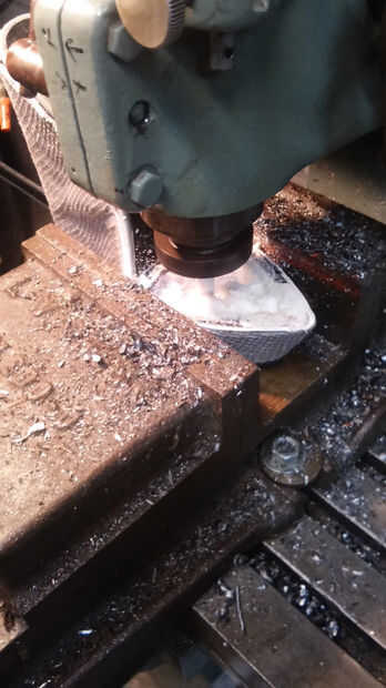 El siguiente paso fue ahuecar la plataforma del zapato. He podido tener acceso a una máquina de molienda que no sólo perforó hacia abajo, pero también se puede mover de lado a lado. Tener una fresadora era grande, pero puede también ser ahuecado con una broca perforando abajo en las diferentes áreas de la zapatilla.