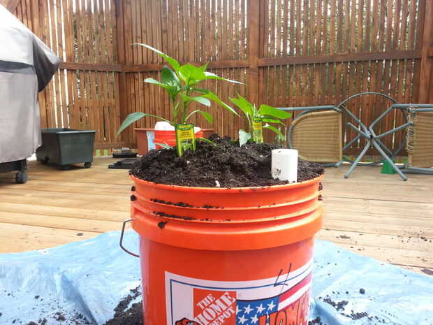 2. sólo planté una planta de tomate por cubeta. Me sentí cómodo plantar dos plantas de pimiento en un cubo, bien el año pasado.