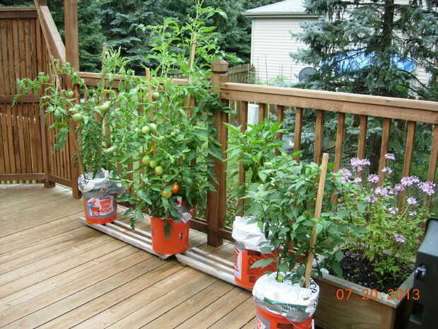 Como dije antes, así que ahora tan bien. A excepción del filete, todo mira gran, y los cubos parecen ser capaces de sostener el crecimiento de las plantas de tomate más grandes que no creo que hubiera prosperado en un contenedor normal como lo hacen en este sistema.