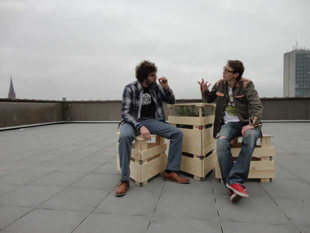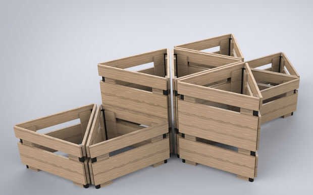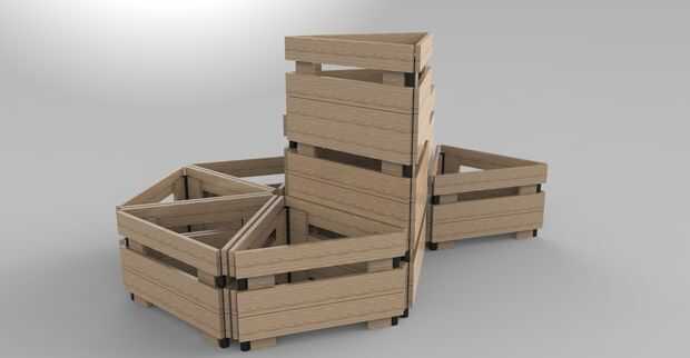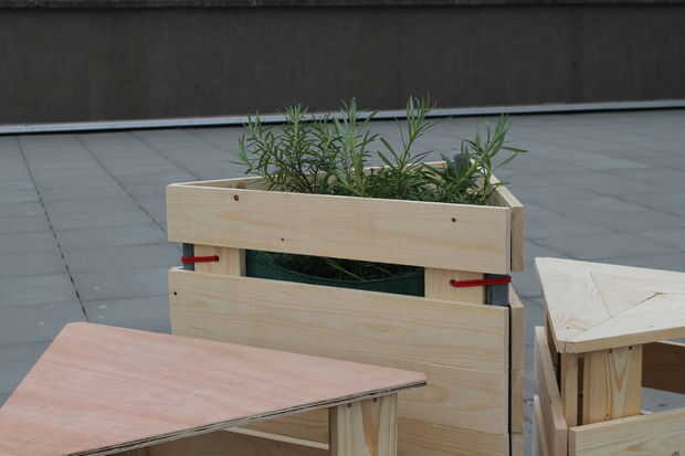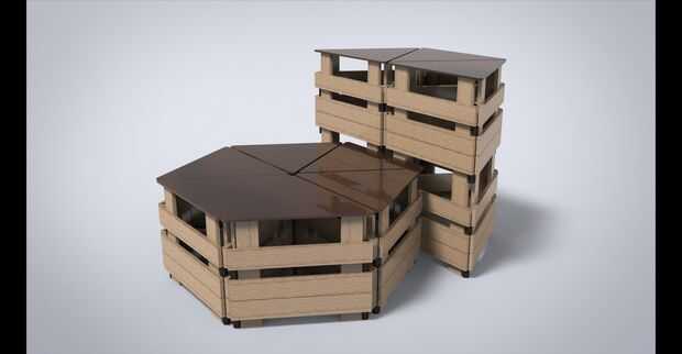 Estos módulos son apilables, movibles, de madera barata, tornillos, PVC y bandas elásticas.