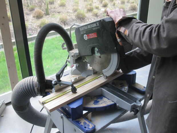 Perforar con una pequeña drillbit primero (por ejemplo 4 m m), luego desde la parte delantera con una broca de 10mm. Esto debe encajar 2 pedazos de elástico. Colocar una pieza sobrante de madera por debajo mientras que grandemente de perforación reduce astillar al final.