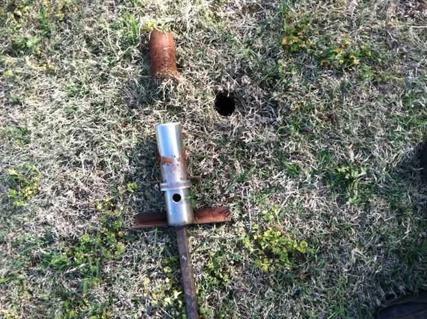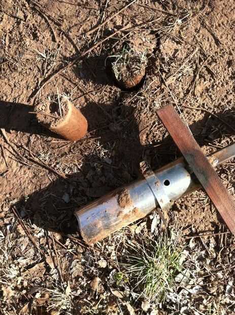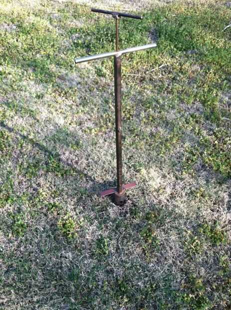El corte tubo y el asa superior se hace del acero inoxidable. El émbolo y el resto es acero suave. Soldar con un soldador MIG. La pequeña abrazadera en la parte inferior tiene 2 piezas de ángulo de hierro actúa como un control de profundidad ajustable. Me placería contestar a cualquier pregunta sobre ella. Es una de las herramientas más usadas que he hecho.