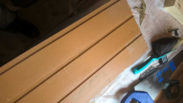 Una vez medido y cortado, coloqué 3 paneles para formar una pared. Ranura de mina juntos no necesitaba hacer nada más, pero si no se utiliza madera ranurada necesitará clávelos juntos.