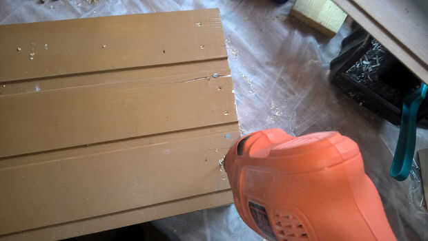 La segunda imagen muestra la proyección de la resultante final de las paredes frontales y posterior. Perforar 2 o 3 agujeros en la parte delantera y posterior de las paredes, los postes y sus tornillos en.