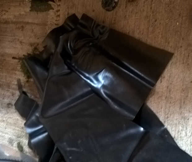 Para evitar que las plantas o el suelo a través de las paredes de madera de la jardinera necesitamos fijar láminas de plástico o de goma a los lados internos de cada pared. Puedes comprar en cualquier tienda de bricolaje. No utilice bolsas negras regulares como un sustituto, son demasiado endebles.