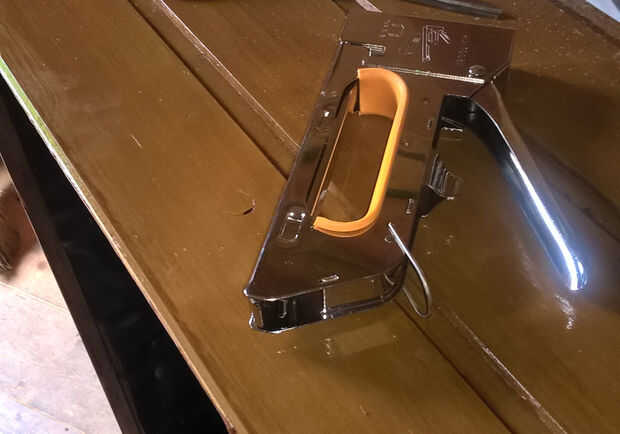 Corte a la altura de la maceta (30cm en este caso) y usar la pistola de grapas para fijarlo.
