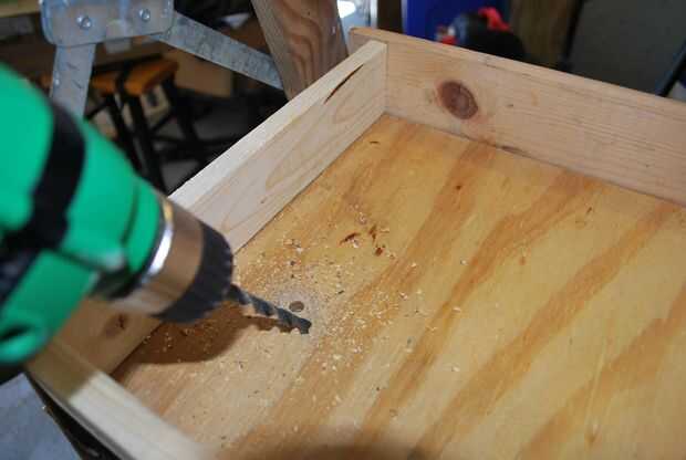 Después de hacer 3 jardineras dentro de la escalera perforó agujeros en las cajas para facilitar el drenaje del agua.