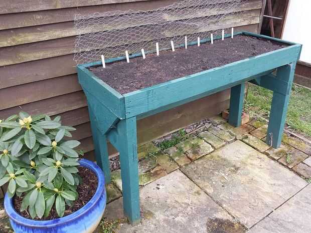 Trabajo hecho, ahora que son buenos para plantar algunas verduras y esperar el cultivo crecer. Encontré que los pájaros le gustaba tener una excavación alrededor de las semillas y sacar con algunas de las plantas de semillero, usé un trozo de alambre de pollo en la parte superior para evitar esto (estoy pensando en hacer un marco de estilo apropiada 'cloche' para la red este año).