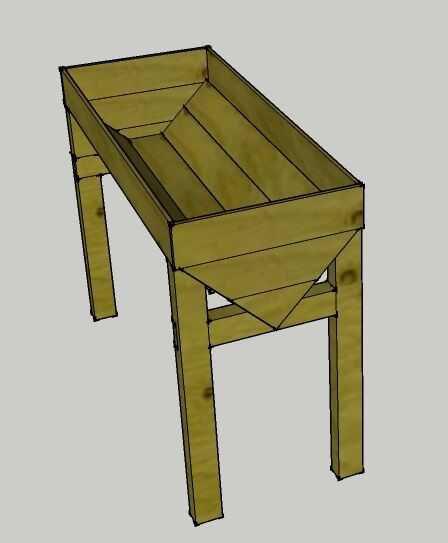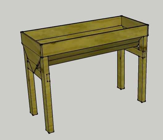 No quería pasar demasiado tiempo en cortar toda la madera, así que decidí probar y trabajar con las dimensiones que la madera de la plataforma. La longitud de la maceta es de 120cm y las patas son 80cm, los bits sólo que tuve que cortar fueron las articulaciones de apoyo pierna y tablones de extremo.