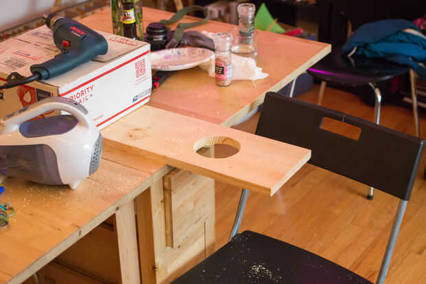 2. Utilice la sierra para taladrar cada agujero. Tuve que parar con frecuencia y retire la sierra para despejar las virutas de madera fuera del agujero y proceder más profundo.