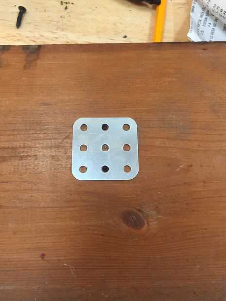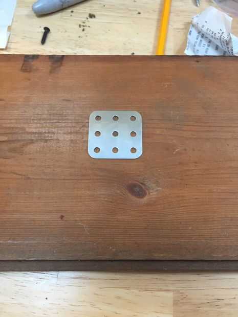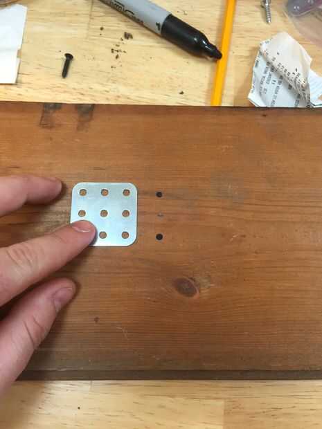En primer lugar, marqué el centro, donde se colocaba la placa de Unión. He marcado donde cada plato perforado en la placa utilizando un rotulador. Luego perforé la parte inferior 3/4 de la forma del tornillo en el tablero y deslizar la abrazadera debajo. Luego perforé el tornillo superior a fijar la brida. Repetí esto hasta que había asegurado de mis pinzas a la Junta.