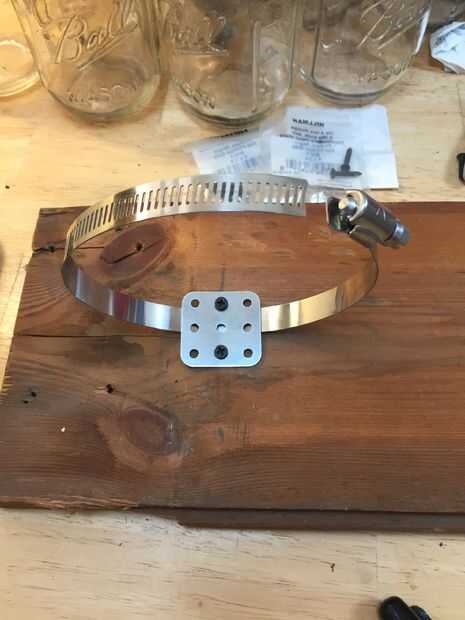 Para asegurar a mi masón tarros, usé abrazaderas metálicas y reparación de placas. Las placas de reparación Fije las abrazaderas de la Junta.