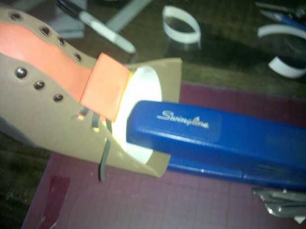 colocar una taza en el zapato y grapas en su lugar. eso es todo. Si usted planea usarlo como un plantador entonces utilizaría un vaso de plástico en vez del papel que se muestra. todo lo que queda es llenar con tierra elegir unas semillas, planta, agua y esperar.