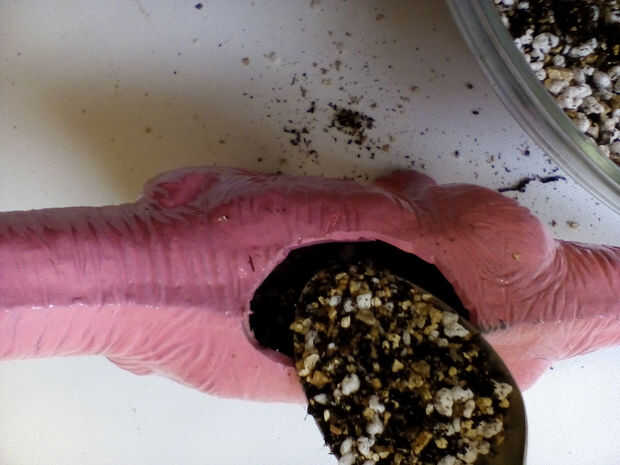A continuación, el soporte de macetas a la jardinera y añadir la planta de su elección. Me pareció más fácil de añadir mina con una cuchara. Luego añadí las plantas con un tenedor y cuchara antes de agregar el medio más en la parte superior. Una vez que ha hecho esto, tu es terminado. Rawr! Espero que les gusten!
