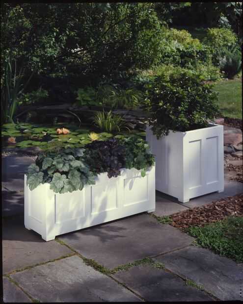 Construimos nuestros plantadores de nominal 5/4 (11/8 pulg. densamente) y pino de 1-pulgada (3/4 pulg de espesor) y madera contrachapada de abeto de 3/4-pulg de espesor grado marino. Contrachapado marino se hace con pegamento impermeable por lo que puede hacer frente a la humedad. Para prolongar la vida de los plantadores, hemos añadido los trazadores de líneas metálicas de tapajuntas de aluminio que está comúnmente disponible en las ferreterías y construcción de distribuidores de alimentación.