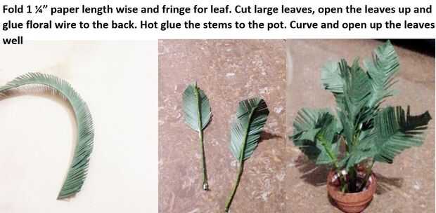 Ahora que tienes toda tu práctica borde... ¿Qué tal hacer una planta de Palma? es muy fácil... simplemente doblar una tira amplia de 1.25" de papel en dos y se corta en un ángulo... Cortar hojas y sujete el alambre floral. Luego pegamento caliente a la olla!
