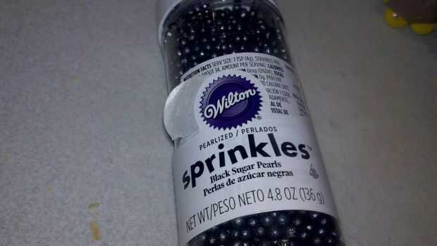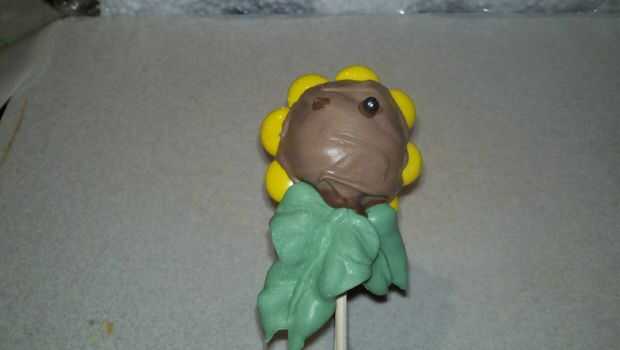 Pegar dos perlas de azúcar negras en cada girasol para hacer ojos.