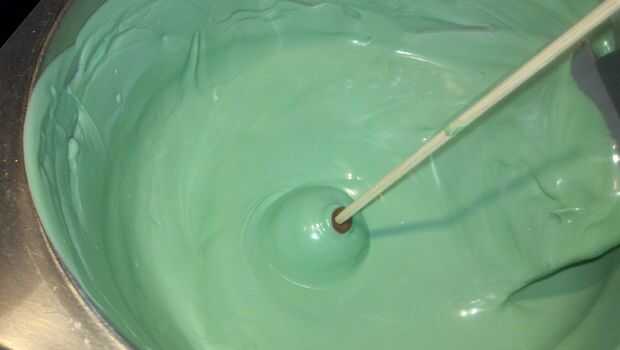 Hacer luz se derrite el caramelo verde con partes iguales verde y Blanco candy. Hacer luz marrón con partes iguales de marrón y blanco.