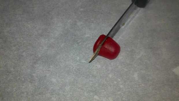 Uno de lo poco rojo gomoso medio círculo empuje en el agujero, lo que es un poco la hendidura.