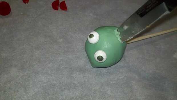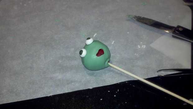 Usando un cuchillo - y mucho cuidado - corte un pequeño agujero donde la boca debe estar en el pop de zombie.
